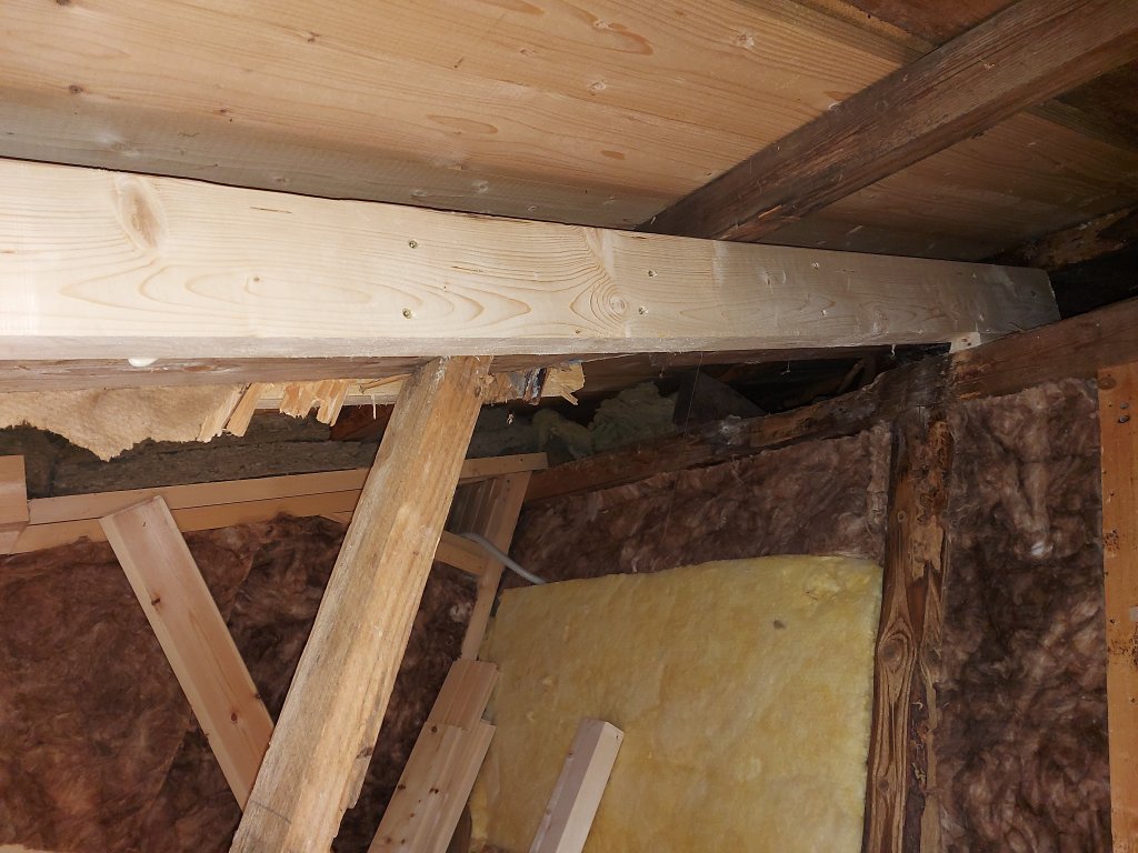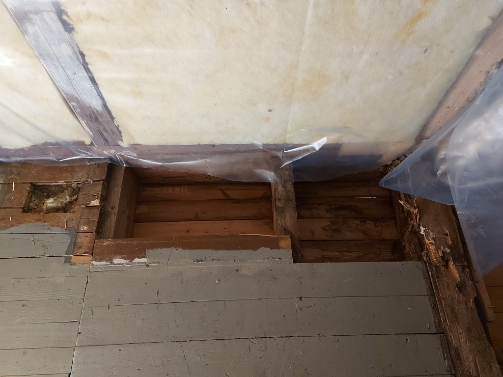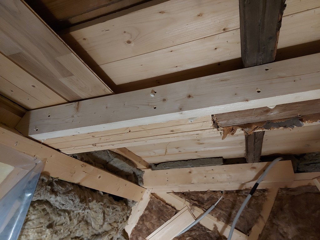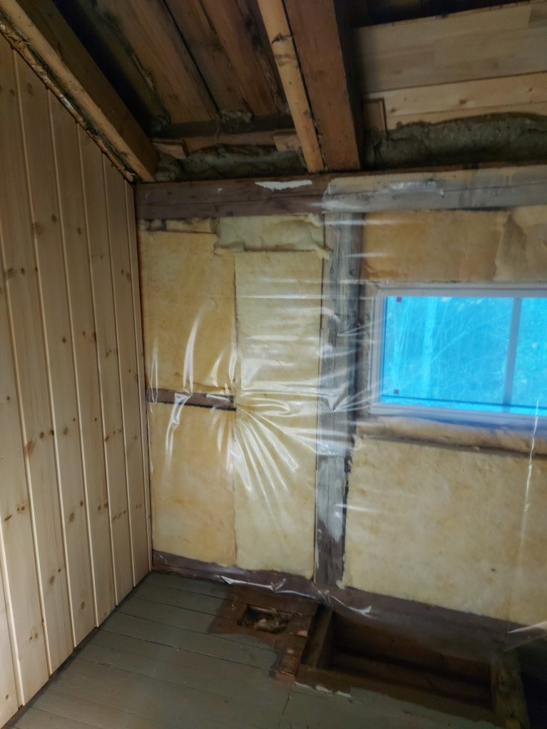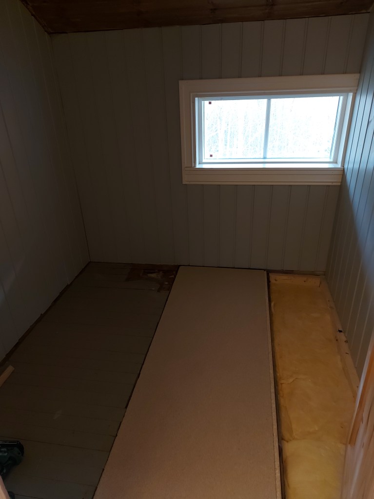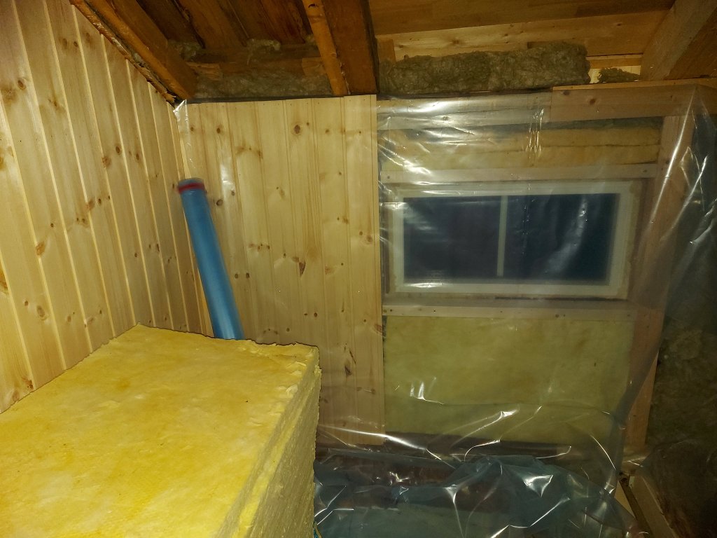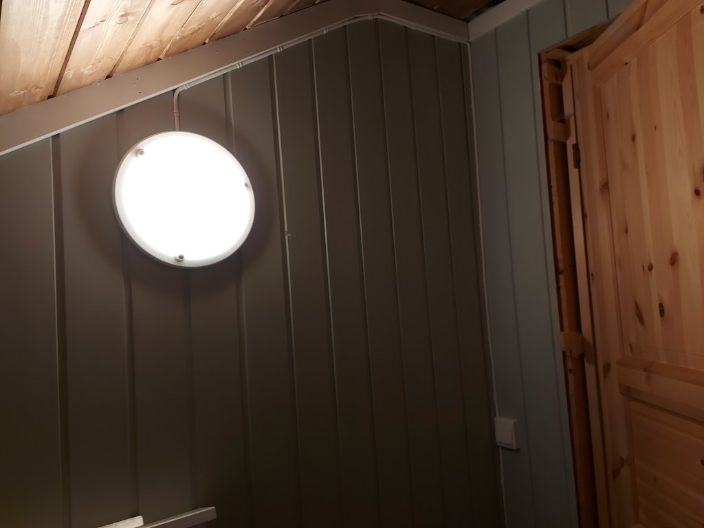 Boden var det mest uferdige rommet i huset da vi kjøpte det. Her manglet både isolasjon, panel og gulv. Her har det antagelig vært vannskade tvers gjennom huset, fra tak til 1. etasje. Det har vært en del råte. En stor del var allerede utbedret i tak,gulv og stuetaket nede. Nytt vindu var også satt inn. Vi utbedret takbjelke og gulvbjelke. Vi isolerte veggene og gulvet. Satte på ny panel og la nytt gulv. Vi har bygd inn klesskap og oppbevaring for turutstyr.