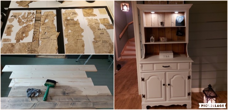 Kjøpte et gammelt amerikansk skap, som ble malt i eggehvit, byttet håndtak/knotter, og fjernet glassdører øverst. I hyllene ble det limt på gamle trebord som bakvegg. Og satte inn spotter. Vårt teskap 🙂